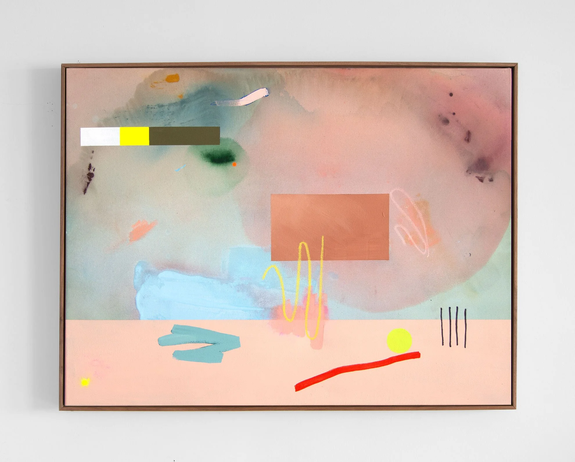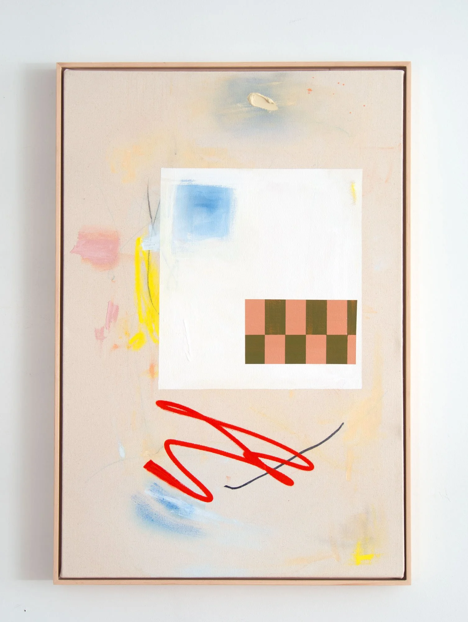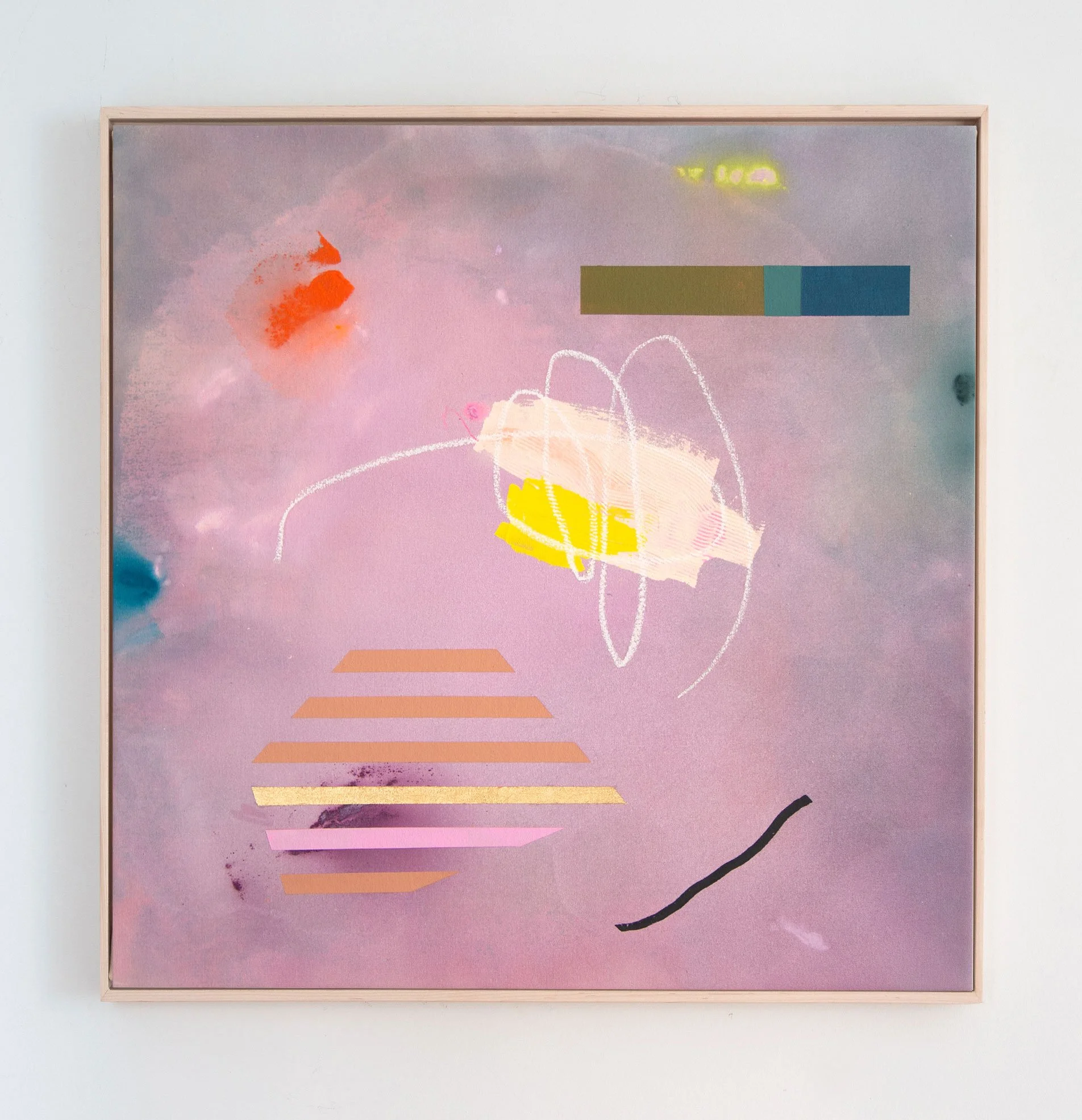 acrylic, gouache, pencil, marker, tape & oil pastel on raw canvas