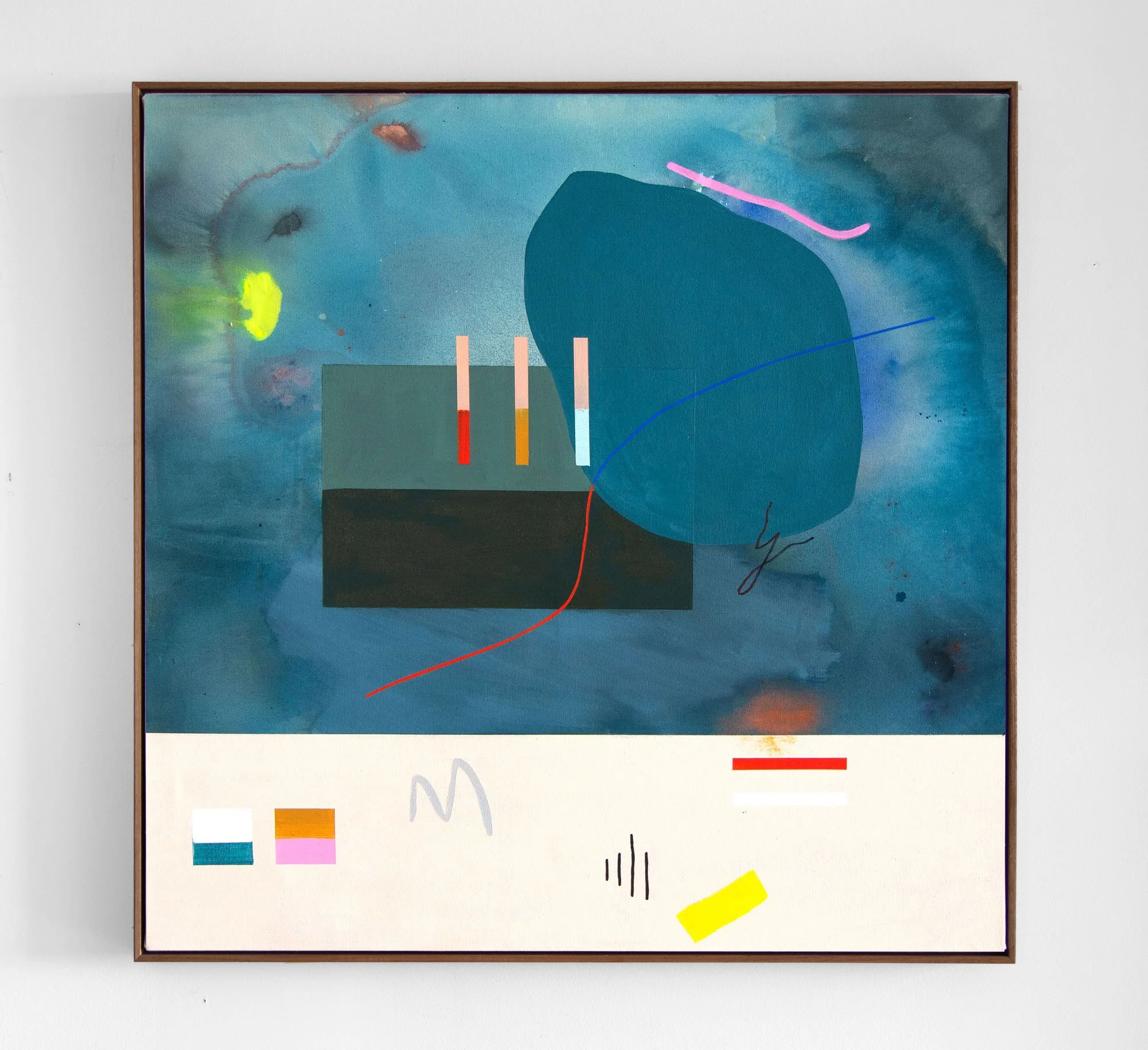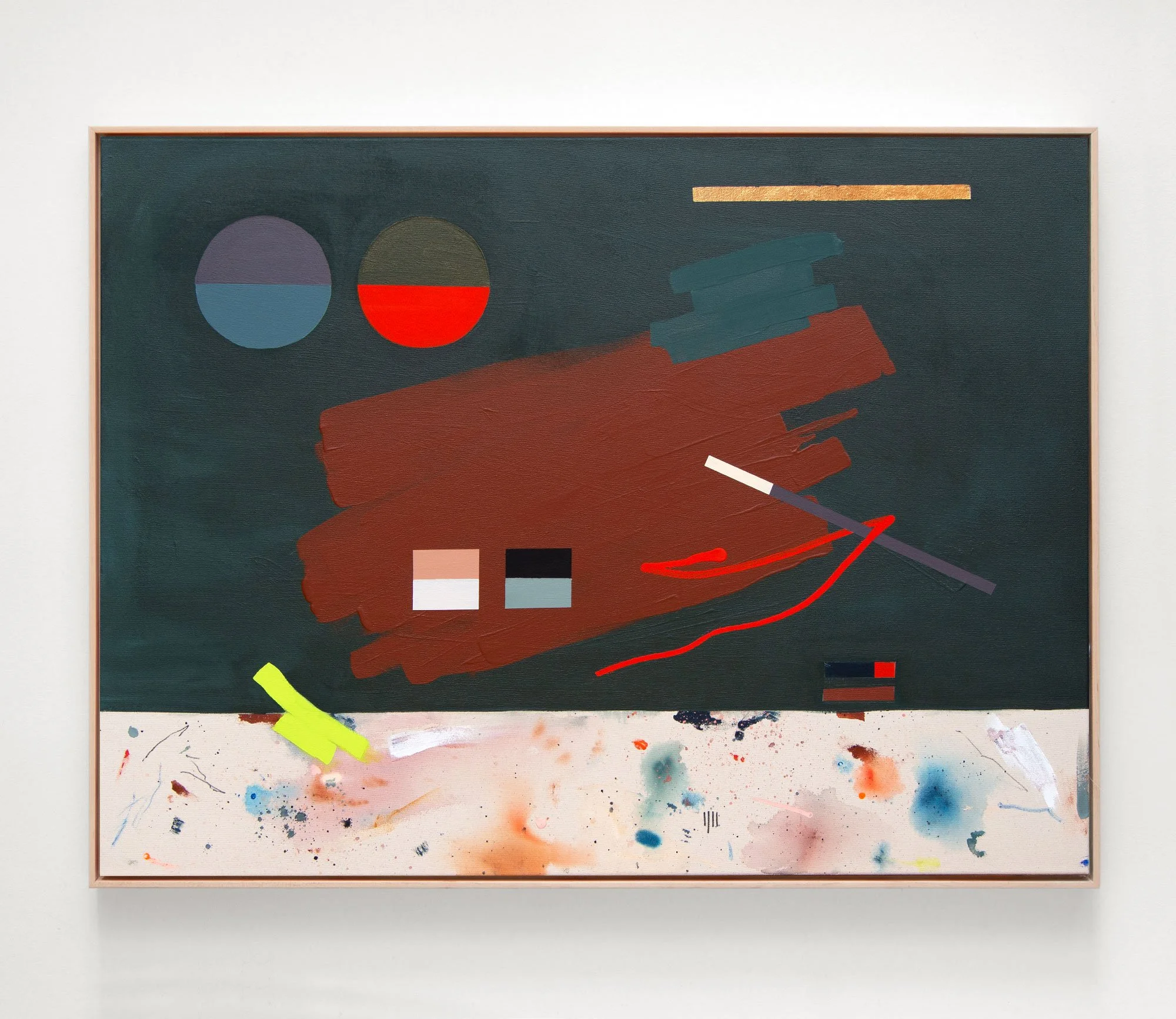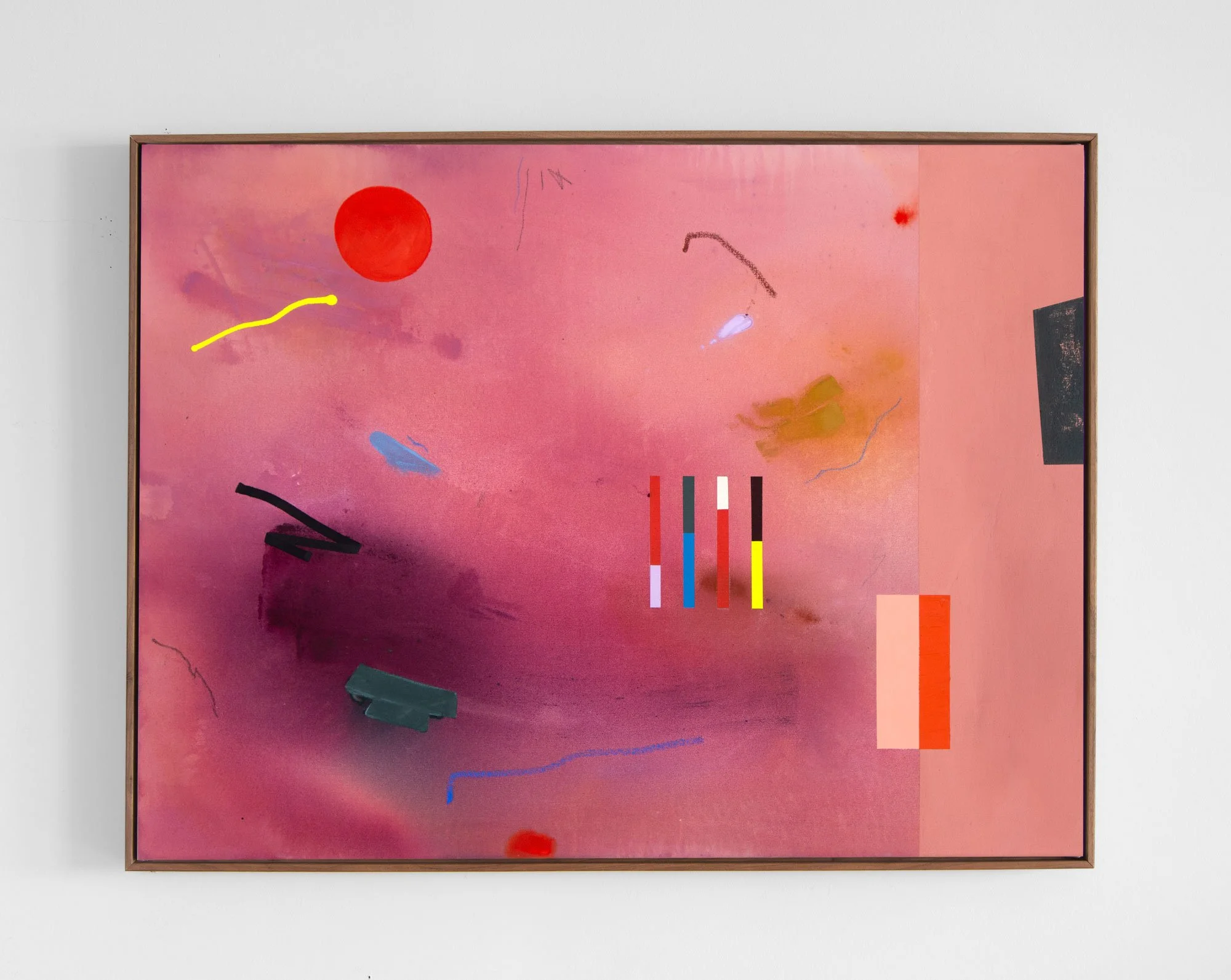 acrylic, gouache, dye & oil pastel on raw canvas