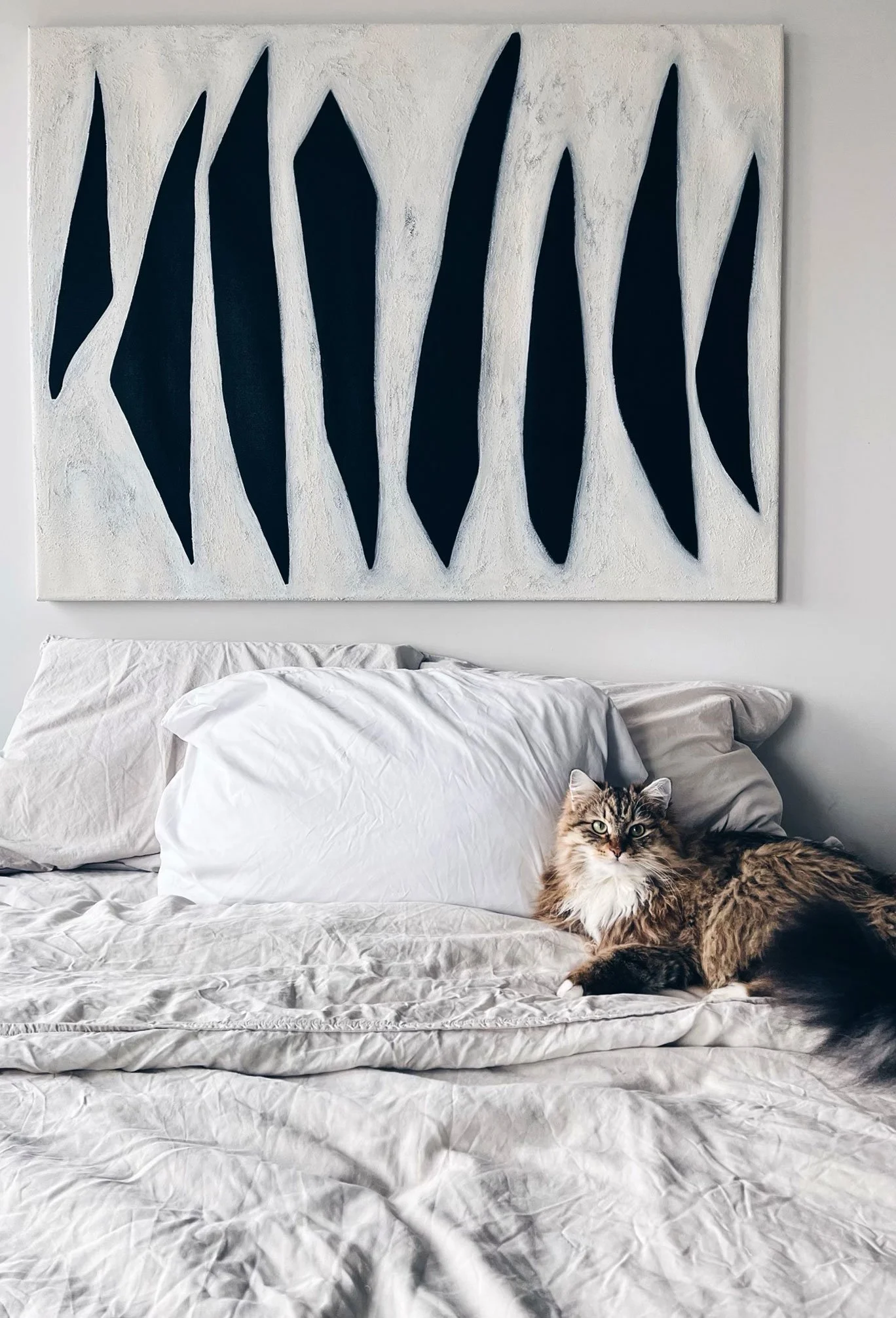 BLACK CLOUD SILVER LINING / mixed media on canvas / installed in Brooklyn residence by DATE Interiors / Styling Mariana Marcki-Matos / image Seth Caplan