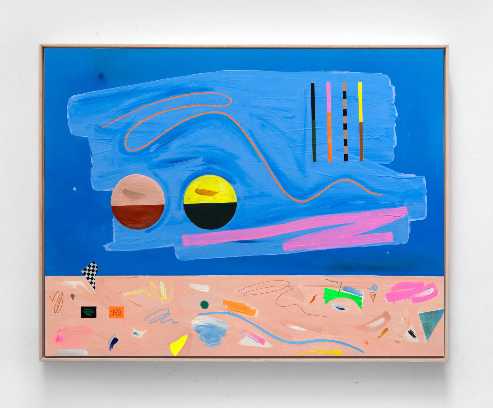 BUT WAIT THERE’S MORE I&II / 36x48 each panel / acrylic, gouache, beach sand & paper on canvas / framed in maple / sold
